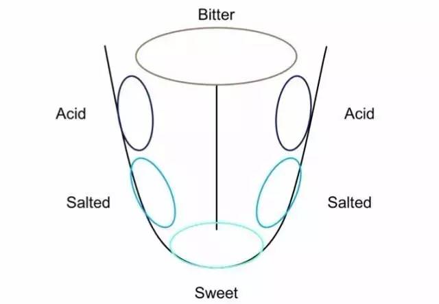 点餐过后,您需要考虑以下元素:食物口感强烈程度,酸度,脂肪,甜度,重量,辣度。然后根据以上因素选择合适的葡萄酒。下图为舌头感受味道的区域。