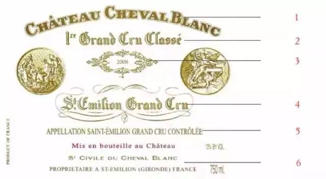 1.Brand’s name, here the famous “Chateau Cheval Blanc”