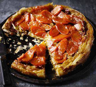 定义:翻转苹果塔。据说翻转苹果塔的由来是因为两姐妹,她们在做苹果塔时,不小心将苹果塔反着放在了炉子里。底部涂满黄油和糖浆的翻转苹果塔由此而生。烘焙时,糖和黄油结成了一层焦糖覆在底面。最后上盘时,再将其翻转过来,焦糖表层在上。