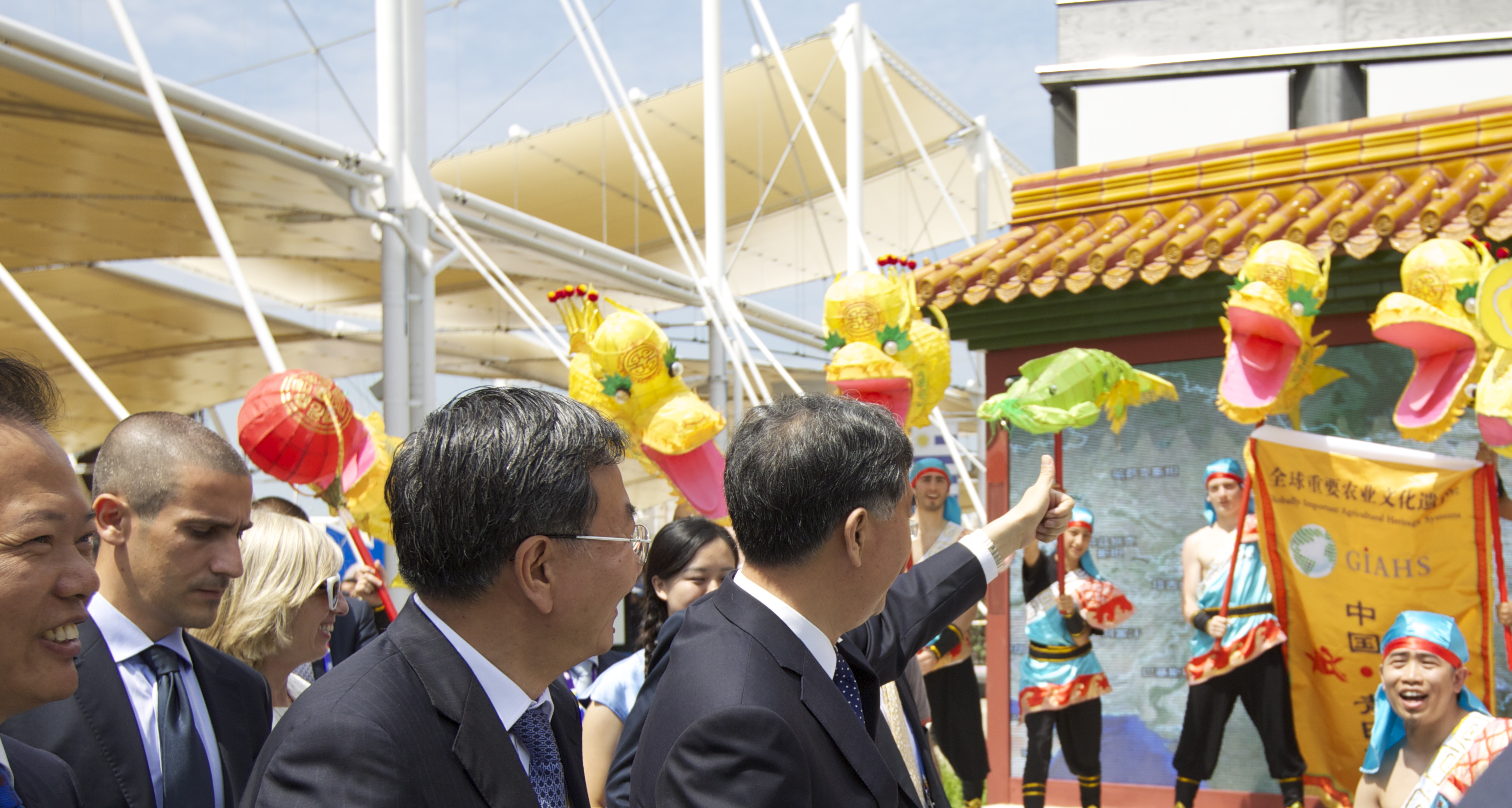 6月8日,悠扬动听的贵州从江侗族大歌、翩翩而游的浙江青田鱼灯舞、精彩纷呈的中国全球重要农业文化遗产(GIAHS)专题宣传片成为米兰世博会中国馆日活动的一抹亮色,折射出了中华民族五千年农业文明的光辉与魅力。此外,来自云南红河哈尼稻作梯田系统的《哈尼古歌》是世博会期间中国馆选定的唯一驻场演出节目。国务院副总理汪洋在农业部部长韩长赋陪同下出席了2015年米兰世界博览会中国馆日有关活动,实地观看了中国GIAHS有关宣传展示。