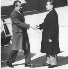 1972年2月21日,美国总统尼克松开始对中国进行为期七天的历史性访问。周恩来总理、李先念副总理、叶剑英元帅等到北京机场迎接。尼克松是中华人民共和国成立以来第一位来访的美国总统。尼克松对此次访问评价说,“这是中美两国领导人越过一个大洋、越过相互敌对的二十多年的握手,这表明中美关系从此将揭开新的一页。”毛泽东主席会见了尼克松,周恩来总理和尼克松总统就两国关系正常化以及双方关心的国际形势等一系列问题进行了多次会谈。