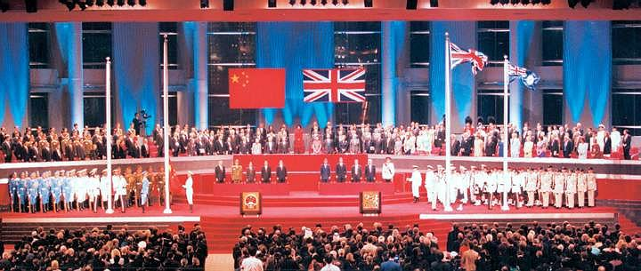 1997年7月1日零时,中英两国政府举行香港政权交接仪式。江泽民主席宣告:中国政府对香港恢复行使主权。交接仪式后,举行中华人民共和国香港特别行政区成立暨特区政府宣誓就职仪式。中国人民解放军驻港部队开始履行香港防务职责。中国恢复对香港行使主权,洗雪了中华民族的百年耻辱,邓小平“一国两制”的伟大构想在香港首先成为现实,中国和平统一大业迈出了重要一步。