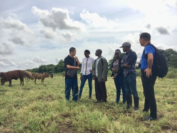 胡小全(左一)调研莫桑比克当地畜牧发展情况,并针对困难提出解决方案。