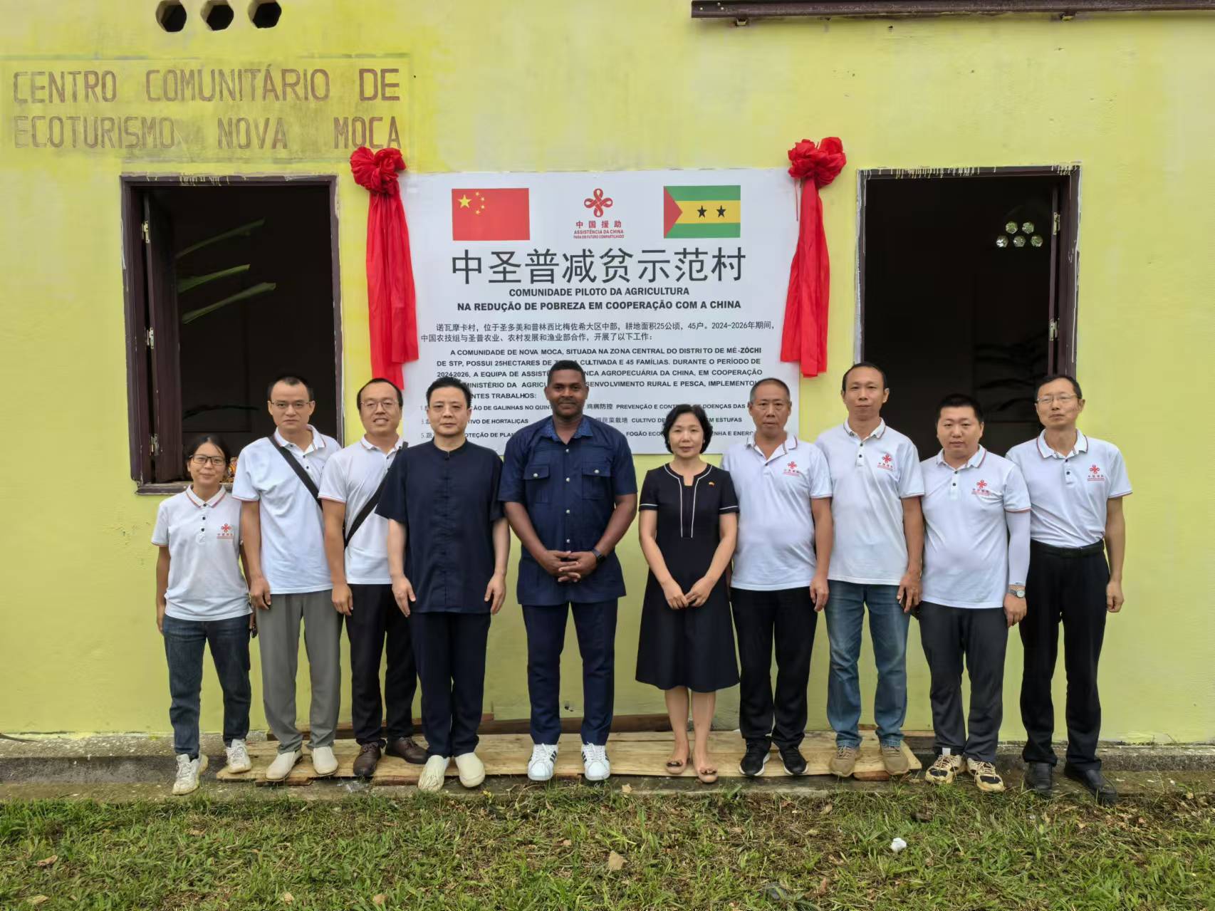 2024年9月13日,援圣多美和普林西比(以下简称“圣普”)第四期农牧业技术援助项目诺瓦摩卡(NOVA MOCA)减贫示范村揭牌仪式成功举办,中国驻圣普大使徐迎真与圣普农业、农村发展和渔业部长热苏斯共同为减贫示范村揭牌。中国驻圣普使馆经商参赞丁恬、圣普农业部主要官员、当地村民和圣普主要媒体等近百人出席仪式。