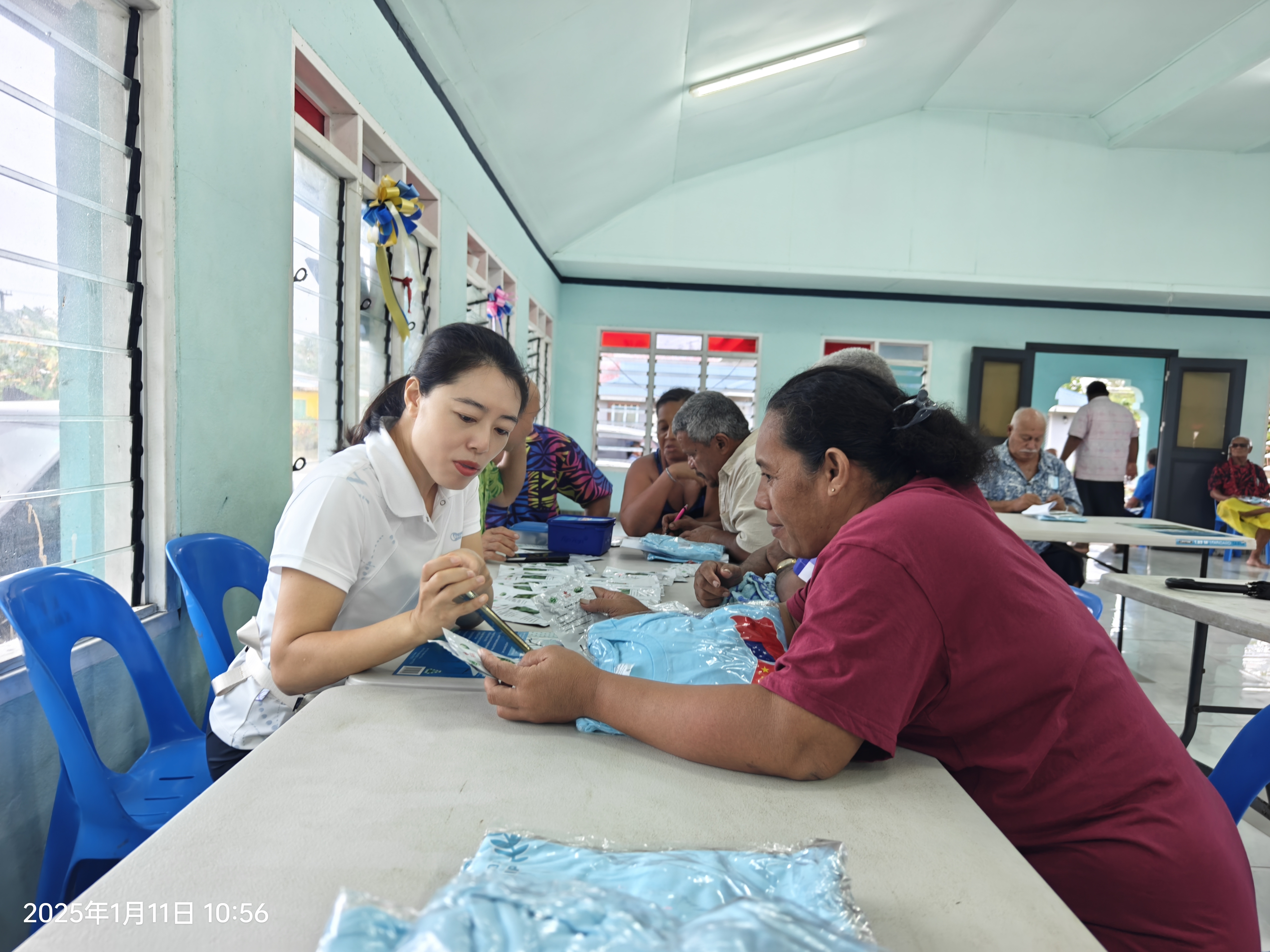 重要场合亦少不了她的身影:萨农渔业部月度会议上,她精准传达专家组意见;媒体采访中,她帮助记者理解项目成果;南太平洋大学学生实习时,她化繁为简解析农技,让知识高效传递。更难得的是,她以文化作纽带拉近两国距离——端午邀萨方伙伴包粽子,中秋讲“嫦娥奔月”传说,元宵递上热汤圆。一个个节日瞬间,她让异国土地漾起家的温暖。