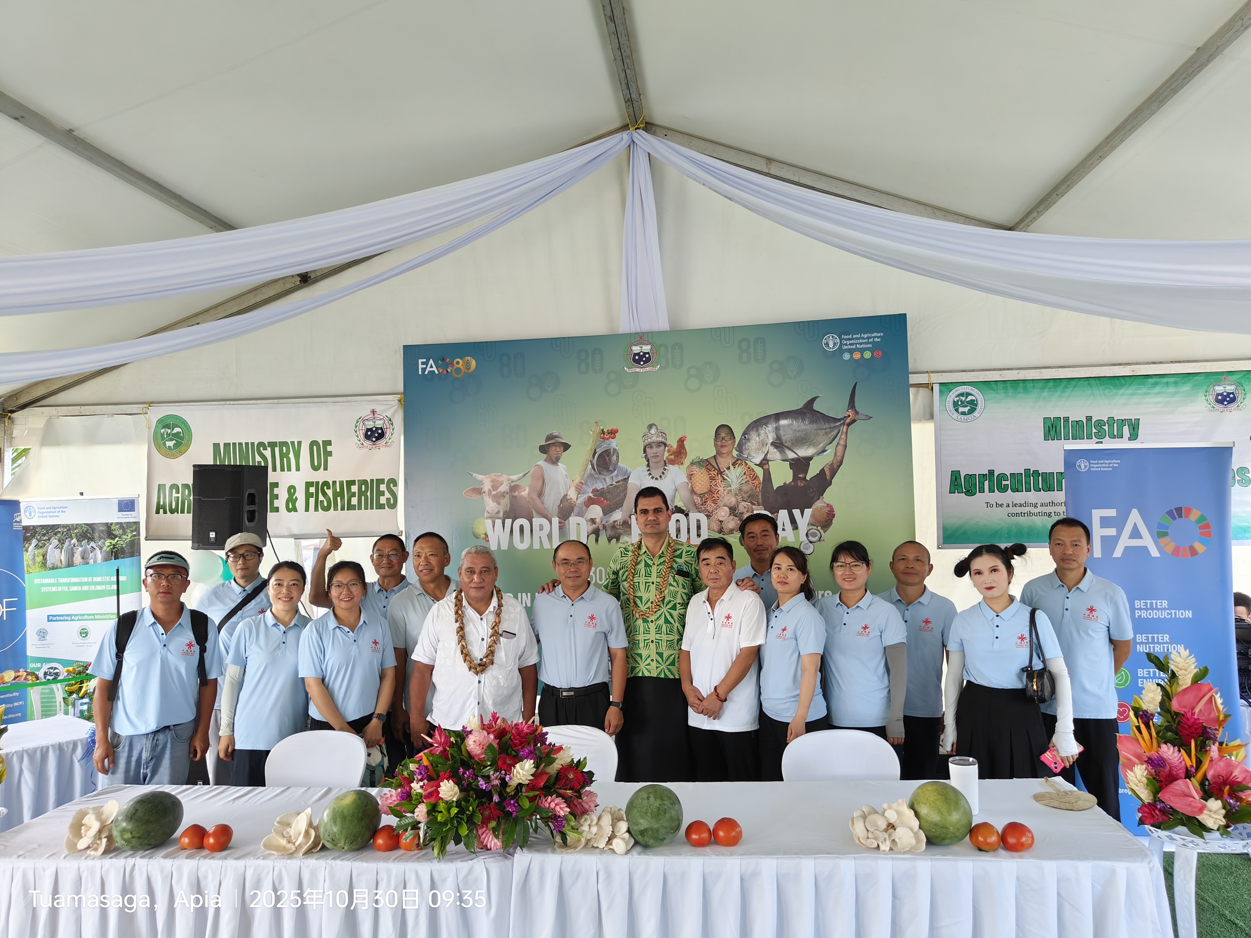 10月30日,应联合国粮食及农业组织(FAO)南太平洋岛屿国家区域办事处邀请,农业农村部国际交流中心选派的援萨摩亚第六期农业专家组,在萨摩亚首都阿皮亚最大农贸市场富加雷亮相“世界粮食日”活动。专家组携自主生产的农产品在现场进行了精彩展示,展位前人气火爆、反响热烈。