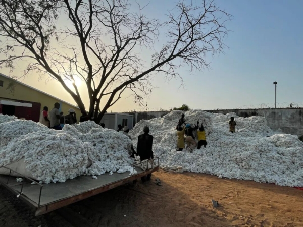 贝宁帕拉库的棉田里,棉农双手捧着蓬松的雪白棉朵,眼角里盛满丰收的笑意。 阳光下,雪白的棉垛越堆越高,像一座小山。 他们眼中的丰收,就是这样。