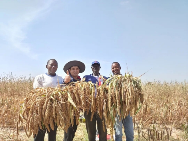 春华秋实是一年的轮回。中国援外专家与布基纳法索的农户共同分享谷子丰收的喜悦。