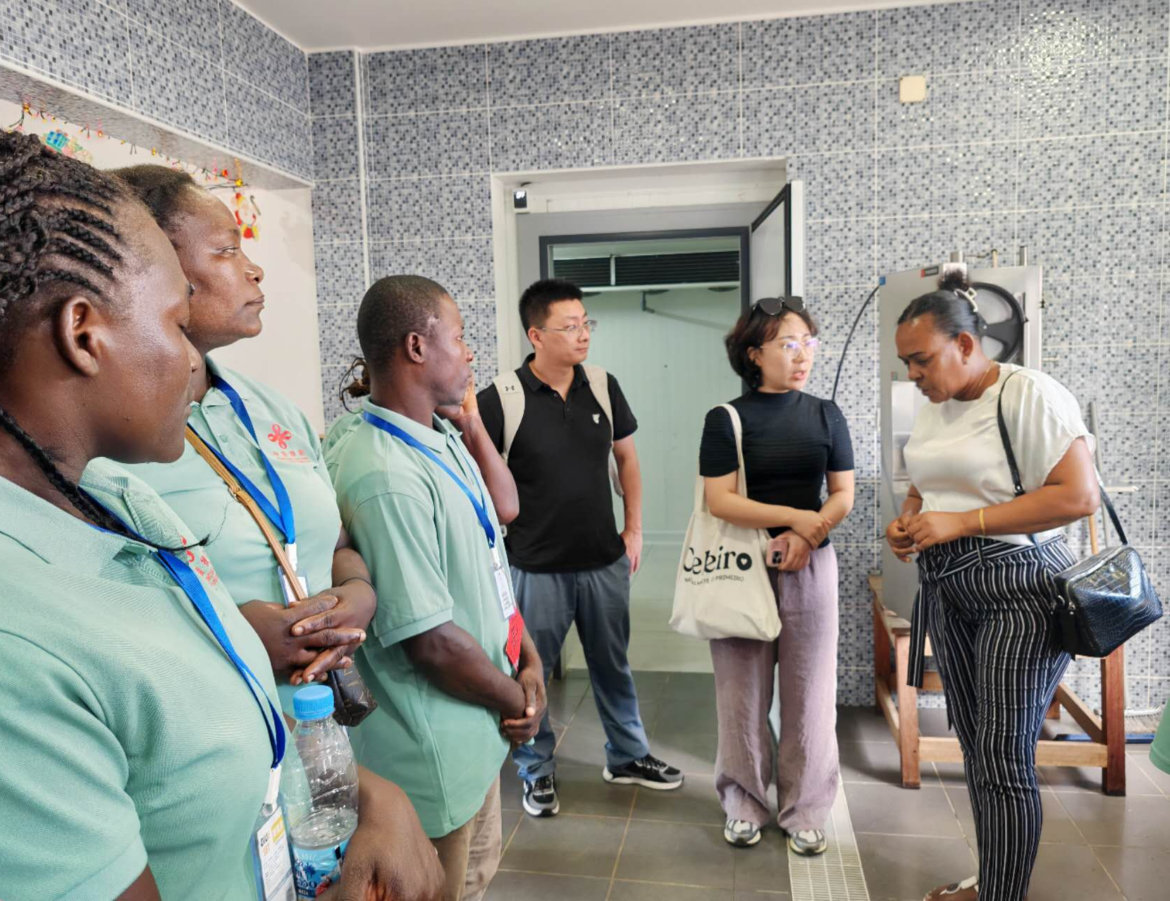 纸上得来终觉浅,“渔”行万里要躬行。课程不仅有理论教学,更有实打实的专业实践和参观考察。在圣多美的PEIXARIA DO MAR商店,专家们手把手教大家操作新型加工设备;在全球最佳减贫案例——中圣普减贫示范村,学员们实地观摩“种植+养殖”的增收模式,纷纷感叹:“原来农业还能这么做,中国的减贫经验太实用了!”